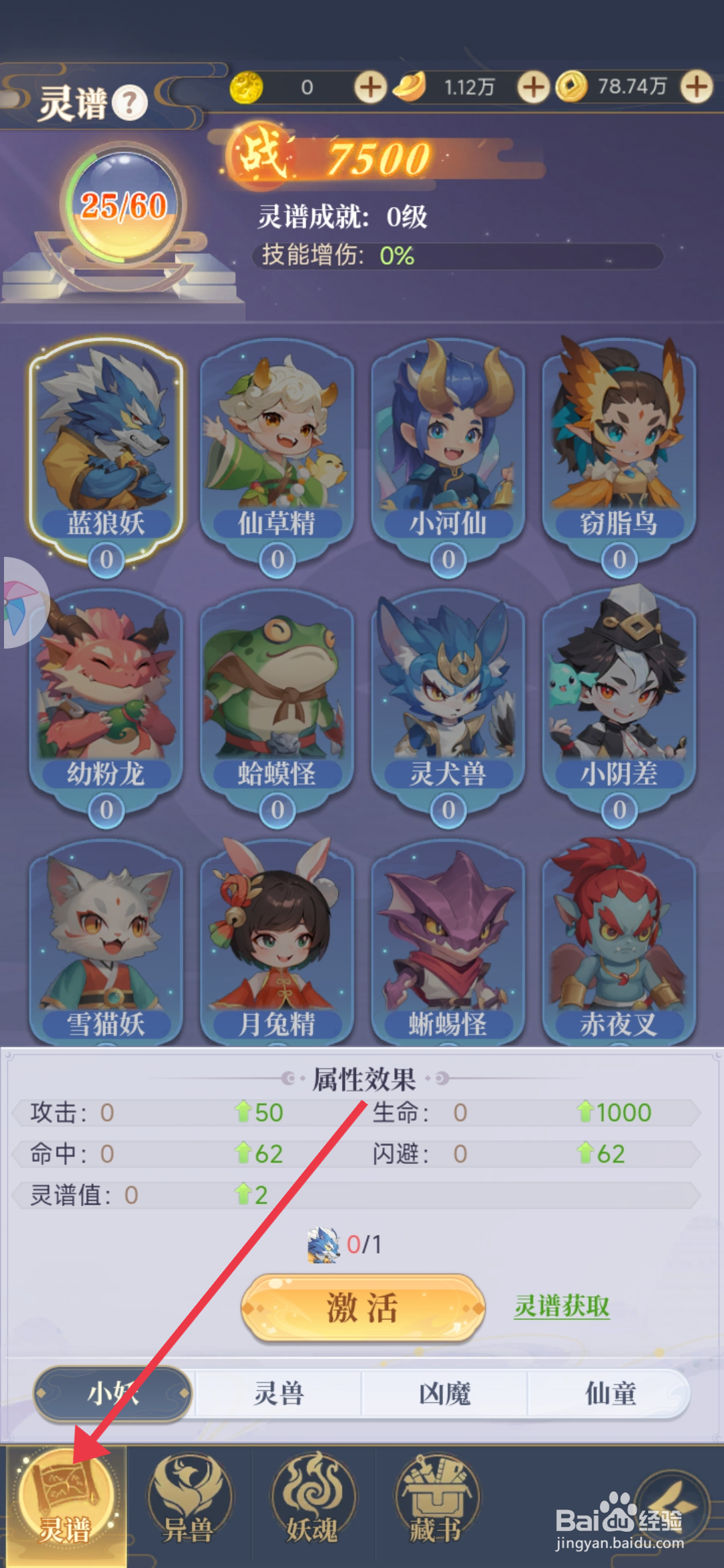 2、第二步:进入神兽界面后,点击灵谱图标。